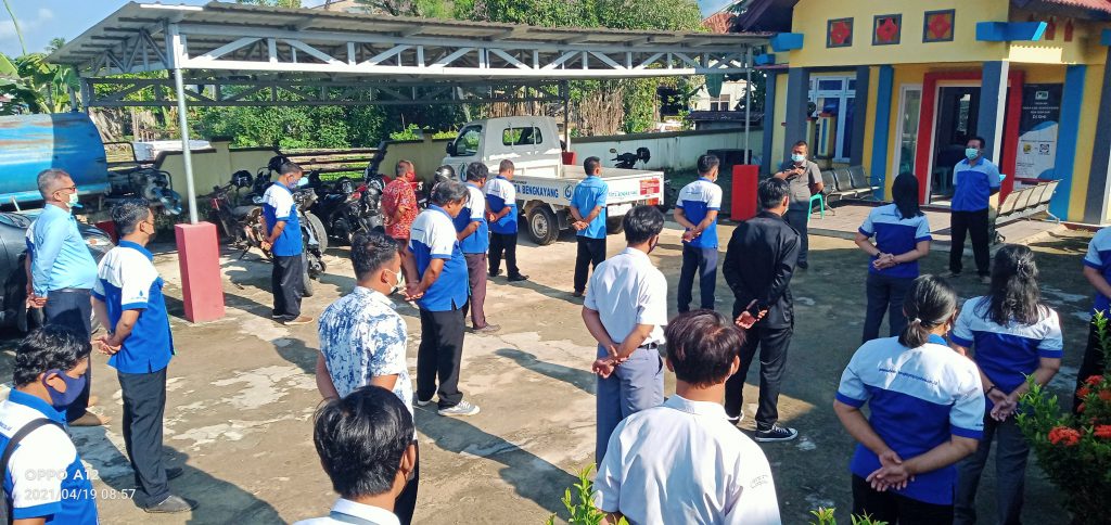 PERUMDAM TIRTA BENGKAYANG – Gelar apel pagi di aula rumah Dinas ketua Dewan kabupaten Bengkayang hari ini senin 19 April 2021, dihadiri oleh seluruh karyawan / I apel dipimpin oleh Kasi Perawatan dan pemeliharaan, turut hadir Direktur Perumdam Tirta Bengkayang.