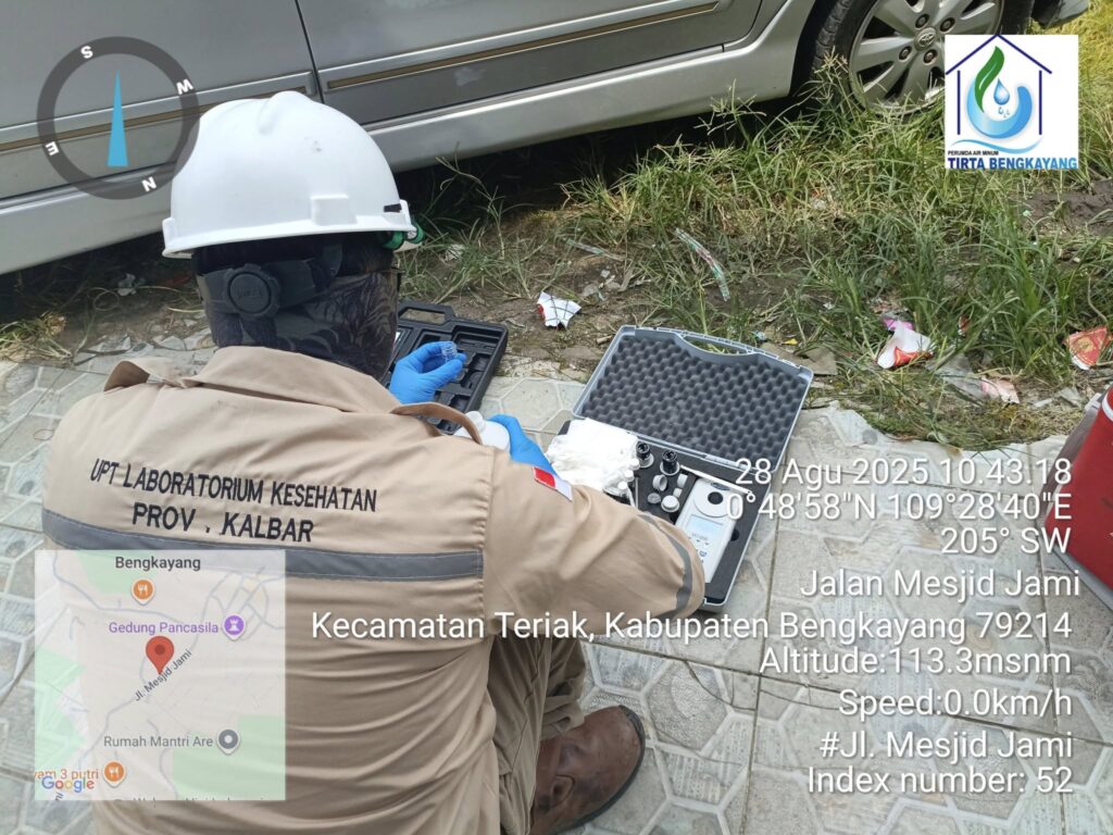 Bengkayang, Kamis (28/8/2025) – Perusahaan Umum Daerah Air Minum (Perumdam) Tirta Bengkayang kembali melaksanakan kegiatan rutin uji sampel air bersih di beberapa titik distribusi air di wilayah Kabupaten Bengkayang. Kegiatan ini merupakan bagian dari komitmen perusahaan untuk menjaga kualitas air yang didistribusikan kepada pelanggan tetap sesuai dengan standar kesehatan dan layak konsumsi.Adapun titik-titik lokasi pengambilan sampel air pada hari ini meliputi:1. Intake Riam Budi2. Reservoir Rangkang3. Jl. Malosa4. Jl. Kampung Pisang5. Jl. Pakok6. Jl. Masjid Jami7. Jl. Bambang Ismoyo8. Jl. Bukit Taruna9. Jl. Trans RangkangPengujian ini dilakukan oleh pihak Laboratorium Kesehatan Daerah (Labkesda) Kalimantan Barat dan didampingi langsung oleh tim teknis dari Perumdam Tirta Bengkayang, yaitu Kepala Bagian Teknik, Kepala Seksi Produksi, serta Kepala Seksi Transmisi dan Distribusi.