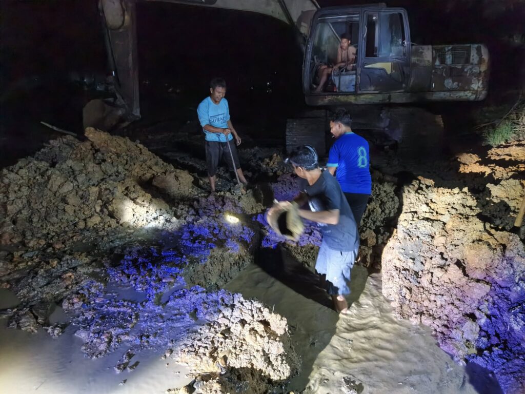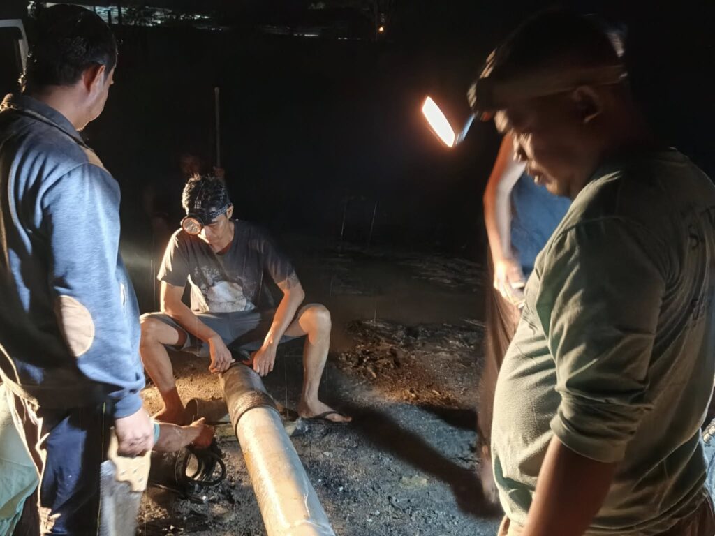 Puji syukur, perbaikan telah berhasil diselesaikan pada malam hari ini, meskipun prosesnya sempat terkendala cuaca hujan di lapangan.