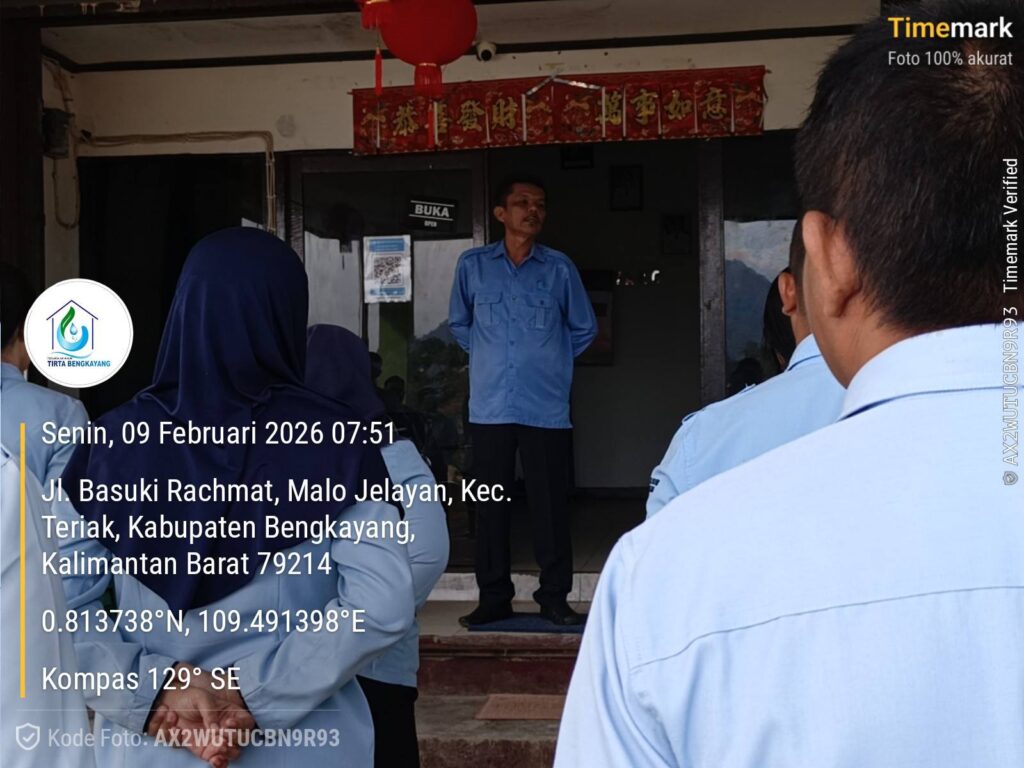 Apel pagi pada Senin, 9 Februari 2026 berlangsung di halaman Kantor Perumdam Tirta Bengkayang. Kepala Bagian Hubungan Langganan memimpin jalannya apel. Kegiatan ini menjadi sarana untuk menyampaikan arahan penting mengenai pelayanan dan kinerja perusahaan.
